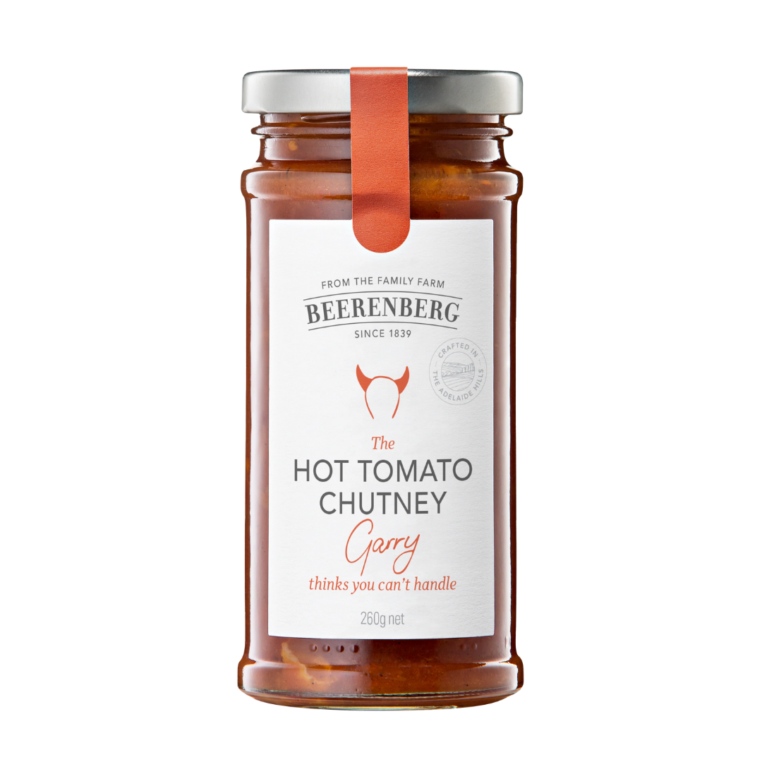 Beerenberg Hot Tomato Chutney is a fiery favourite straight from the kitchen of Garry, a true master of flavour. With its rich tomato base and a bold, spicy kick, this chutney delivers the perfect balance of heat and tang. Whether paired with succulent meats, sharp cheeses, or crusty bread in a classic ploughman’s lunch, it’s the condiment that turns simple meals into memorable feasts.