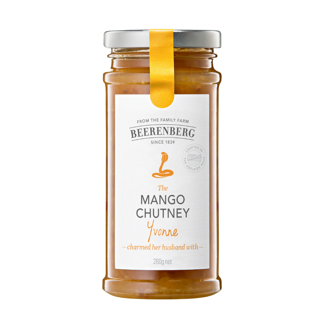 Beerenberg Mango Chutney is a sweet and tangy classic inspired by Yvonne’s famous curry, the very dish that won her husband’s heart. Bursting with the tropical richness of ripe mangoes and a delicate blend of spices, this chutney brings a vibrant flavour to any meal. Perfect with chicken burgers, sweet potato, or roast vegetables, it adds a touch of tradition and homely charm to every bite.
